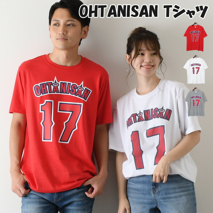 10/11まで★ 店内SALE 送料無料 OHTANISAN Tシャツ メンズ レディース トップス 半袖 おしゃれ カジュアル レッド 赤 スポーツ 野球 ナンバー 数字 17番 大谷さん オオタニサン ユニセックス 男女兼用 ペア お揃い ロゴT メール便